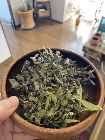 持ち帰ったホーリーバジルやレモンバジルをブレンドして、
